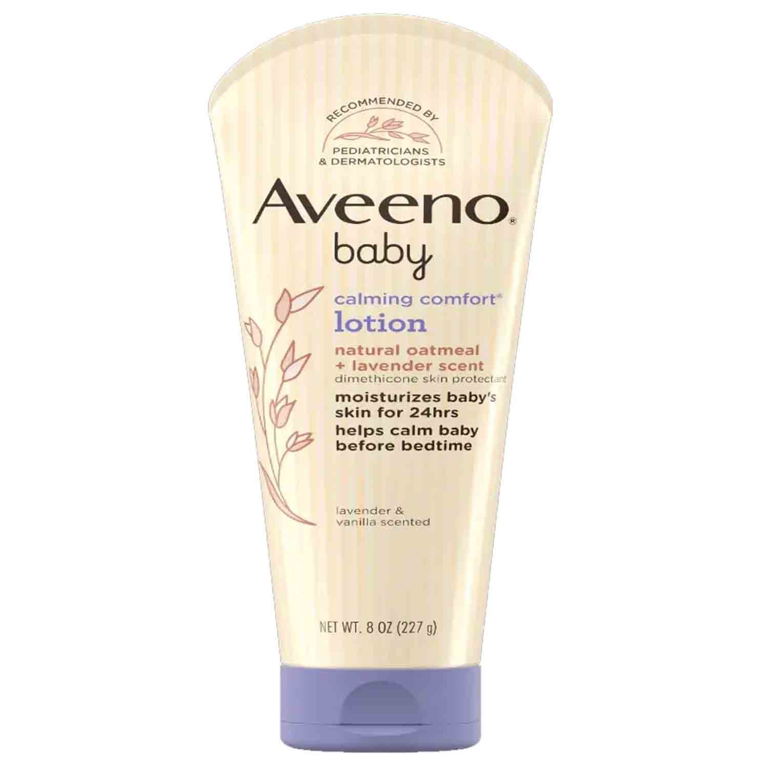 Hypoallergenic and dermatologist tested, Aveeno Baby Calming Comfort Lotion is free from parabens, dyes, and harsh chemicals, making it safe for newborns and everyday use. It is gentle enough for full body application and daily bedtime massage.