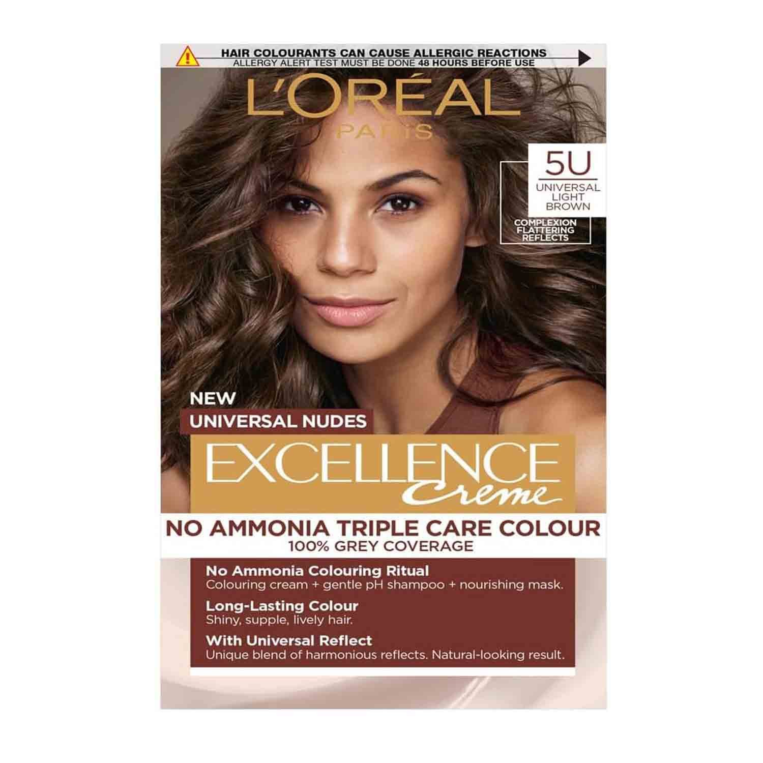 L’Oréal Excellence Nudes 5U Universal Light Brown combines advanced colouring technology with deep hair care: