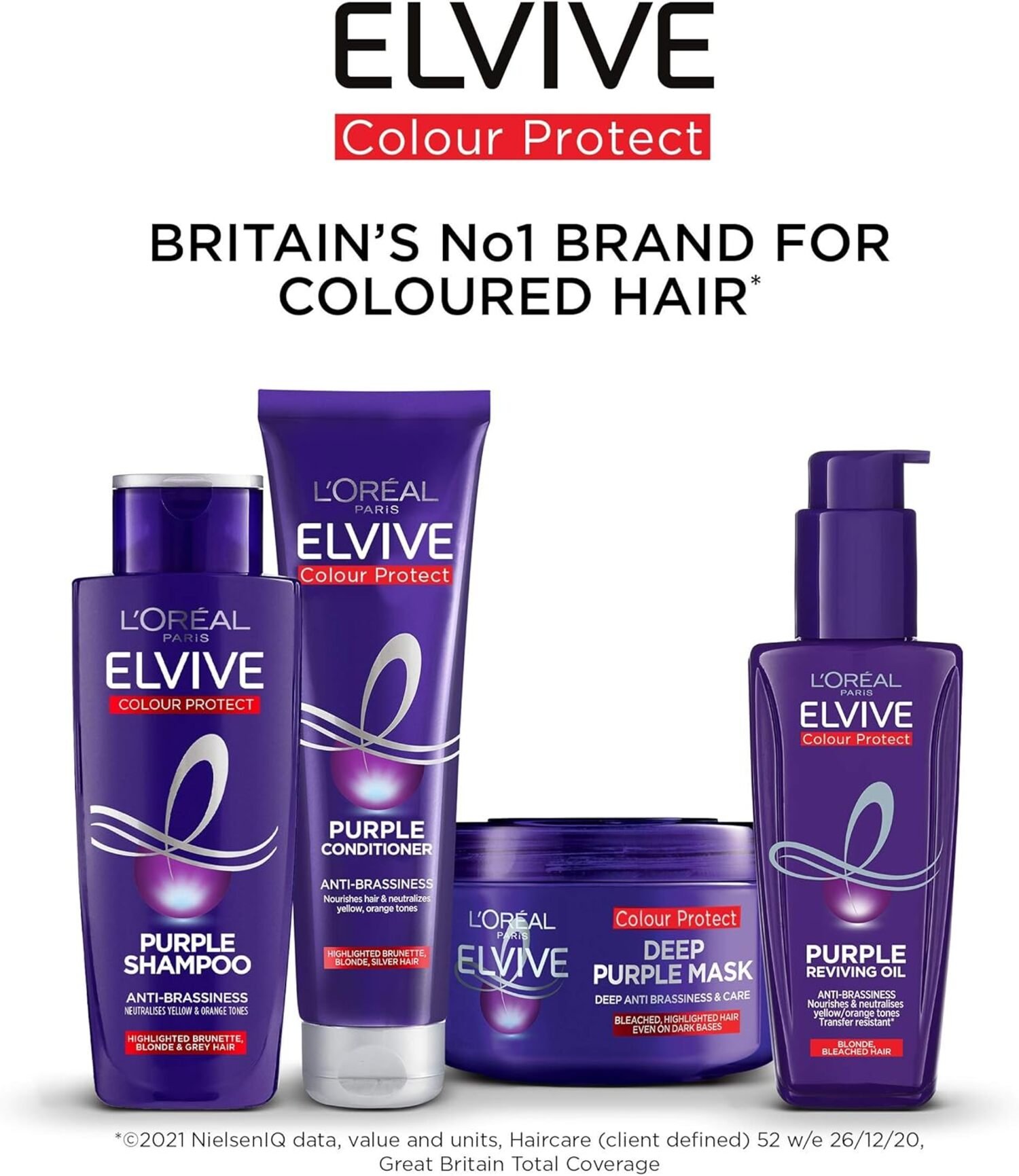 L’Oréal Paris Elvive Colour Protect Anti‑Brassiness Purple Mask – 250ml offers deep care and colour maintenance for colour‑treated hair: