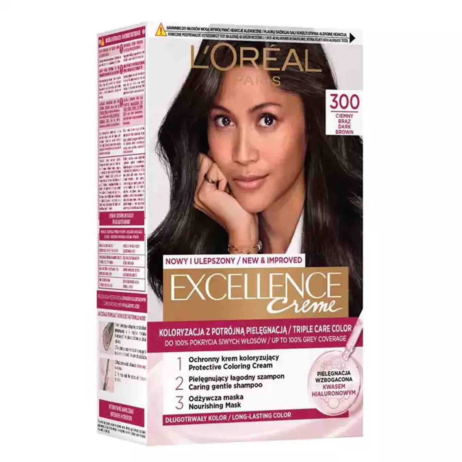 The L’Oréal Paris Excellence Creme Hair Color 300 Dark Brown is a premium permanent hair dye designed to provide rich, natural-looking dark brown color while protecting the health of your hair. This professional-quality hair coloring system delivers long-lasting color with complete grey coverage, making it a popular choice for at-home hair coloring.