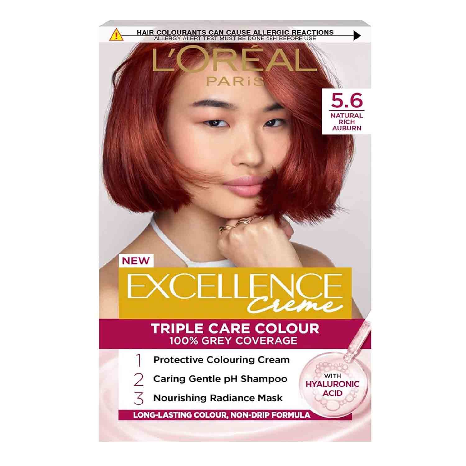 L’Oréal Paris Excellence Crème 5.6 Natural Rich Auburn combines advanced colour technology with deep hair care: