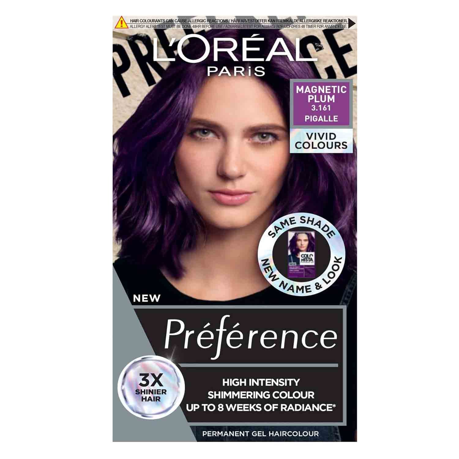 Preference Vivids allows you to express your personality with bold, vibrant shades. Magnetic Plum 3.16 gives your hair a dramatic, stylish makeover while maintaining healthy shine and smoothness. Ideal for those wanting a professional-quality color at home.