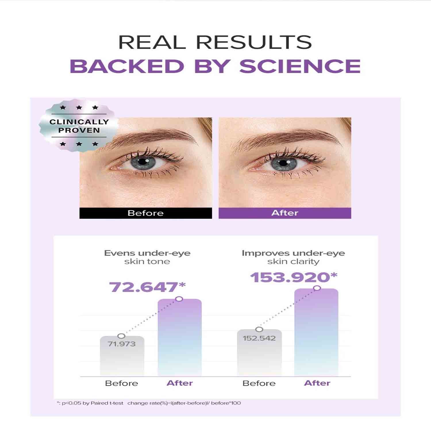Together, these ingredients help restore a more even, radiant look to the under-eye area while improving overall skin clarity.