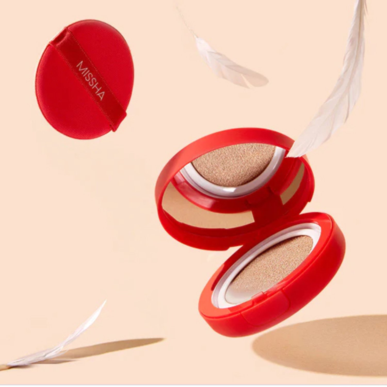 Missha Velvet Finish Cushion N 23 delivers long-lasting coverage with a soft velvet-matte finish while protecting your skin from harmful UV rays with SPF 50+ PA+++. Its lightweight formula blends seamlessly to even out skin tone, blur pores and cover imperfections, giving a naturally smooth and shine-free look all day. Ideal for daily makeup with skincare benefits.