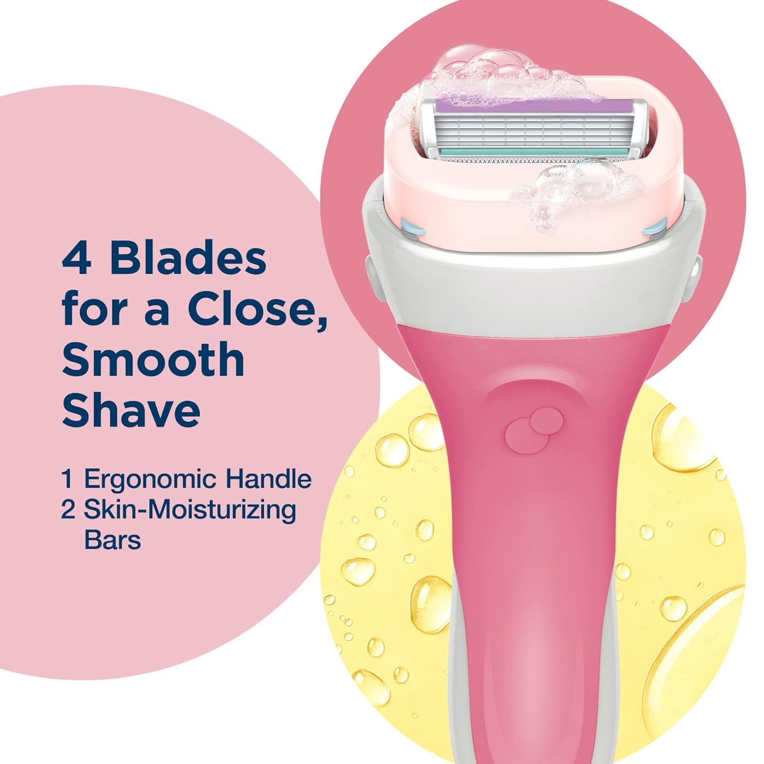 Benefits: Smooth shave, built-in moisturizing bar, no shaving gel needed